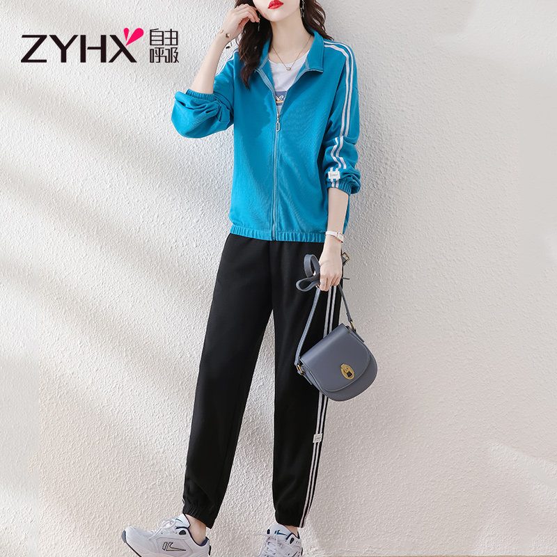 Free Suction Sports Suit Women Spring 2022 New Spring Autumn Casual Cardiovert cotton T Outdoor Morning Run Two sets