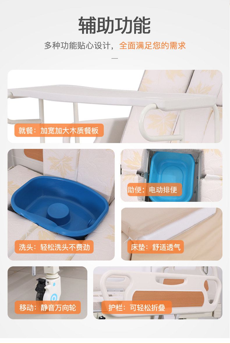 Hon Tong Electric Nursing Bed Household Multifunction Medical Bed Flashlight Integrated Whole Lifting Electric Poop Convenient Medical Bed