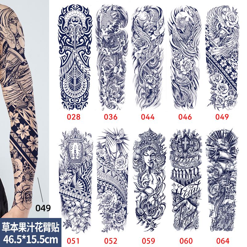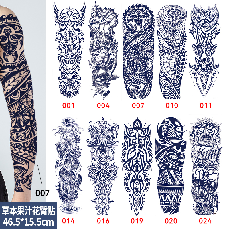 Juice Herb Ben Large Flower Arm Tattoo Sticker semi permanent waterproof Persistent non-reflective simulation Spurs young men and women net red totem-Taobao
