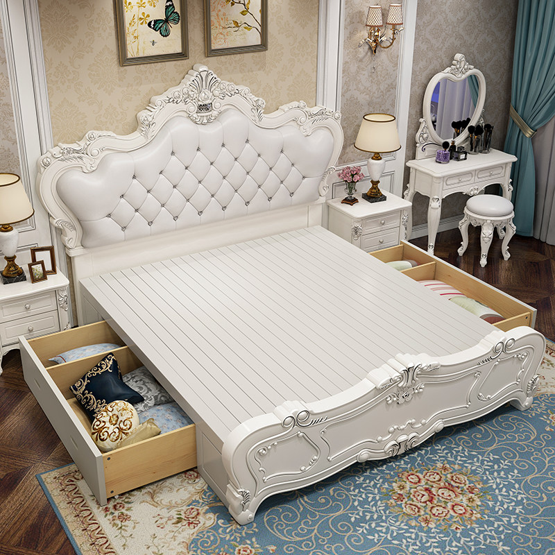 Lanxiu European-style solid wood bed modern minimalist 1 8 meters double princess bed small apartment 1 8 meters 1 5m master bedroom marriage bed