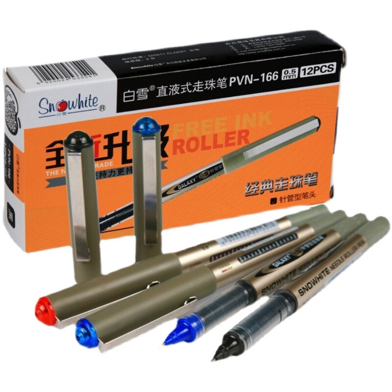 White Snow Straight Liquid Type Water-based Ballpoint Pen Black Red Straight Liquid Pen Middle Sex Pen Needle Tube Type Business Office Stationery Red Black Pen