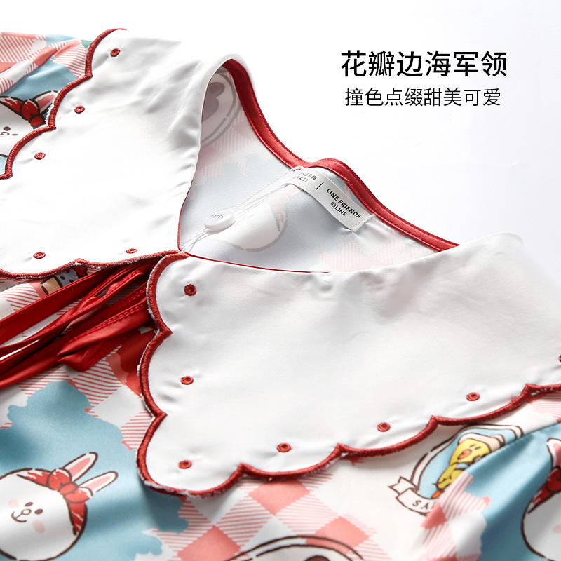 Fenten (Ice Silk Pyjamas) Woman Long Sleeve Sweet Princess Wind Sleeping Dress Spring Autumn Style Cartoon Home Clothing Suit Autumn