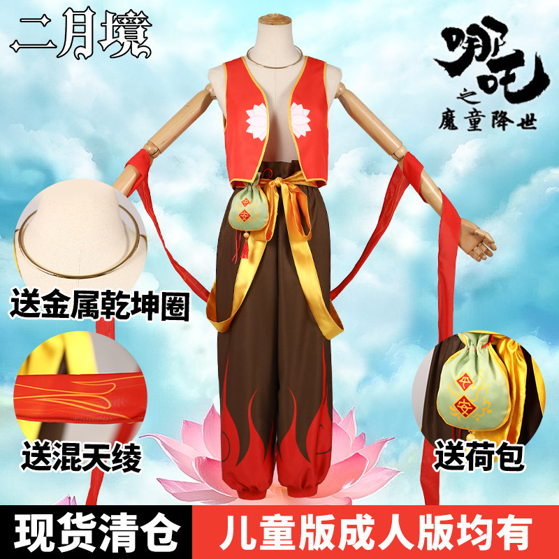 (Adult and Children) Nezha COS Devil Boy Incarnation Costume Nezha Boys and Girls Performance Costume Cosplay