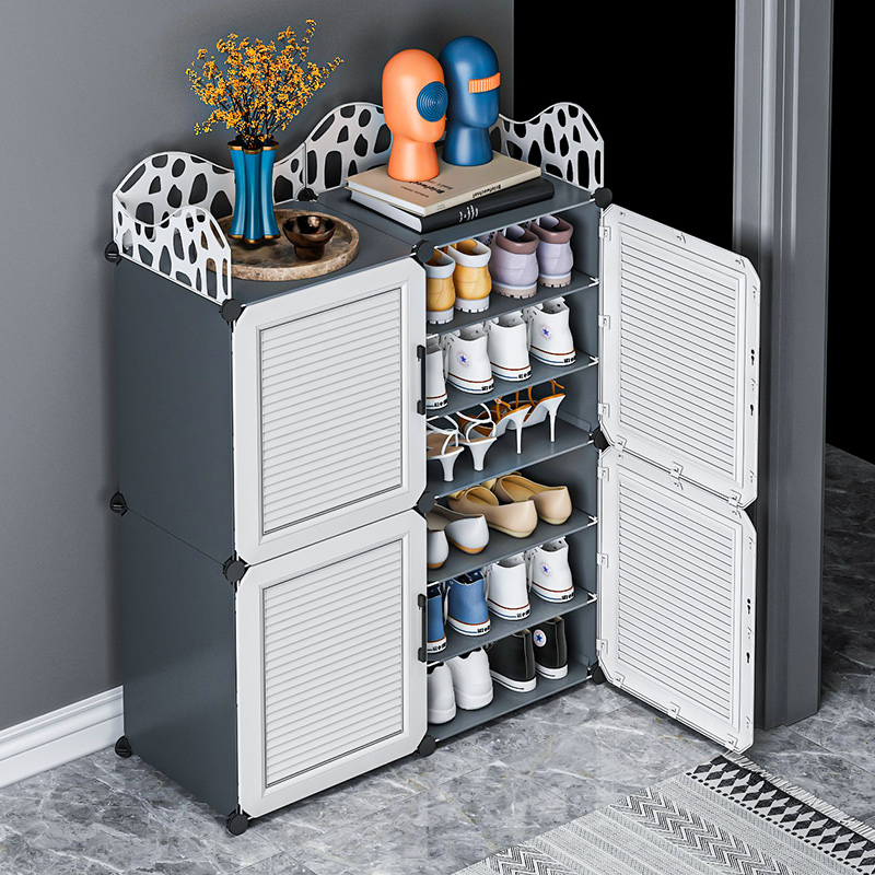 Shoe rack 2021 explosion household room narrow shoe shelf to house dust - proof small door shoe cabinet
