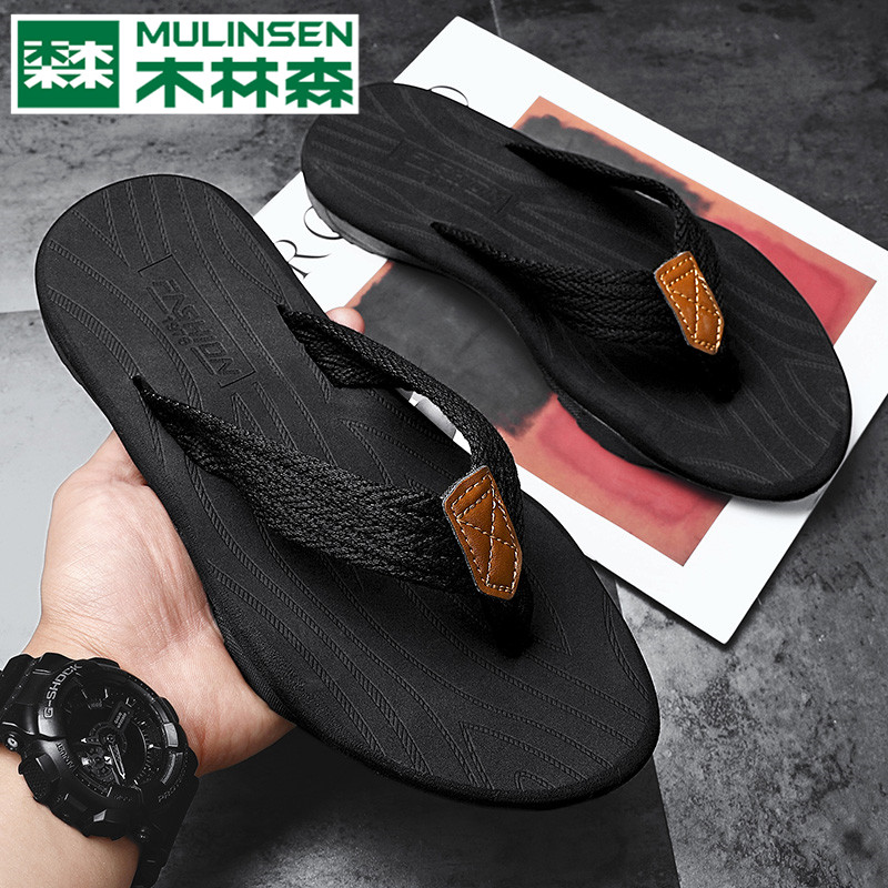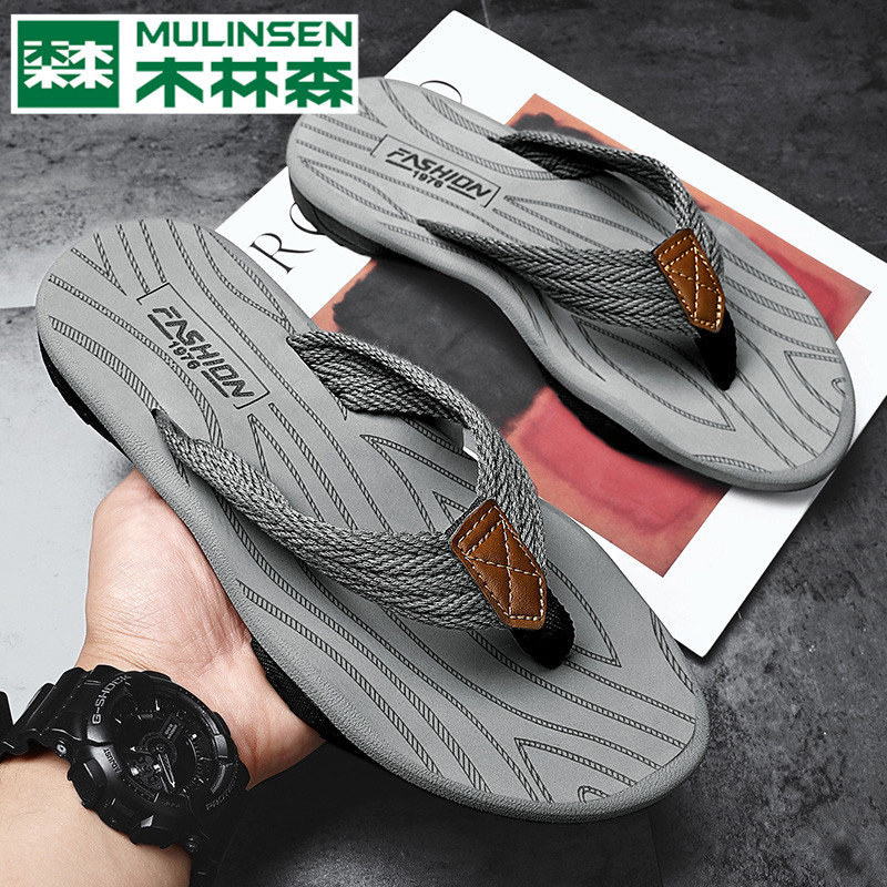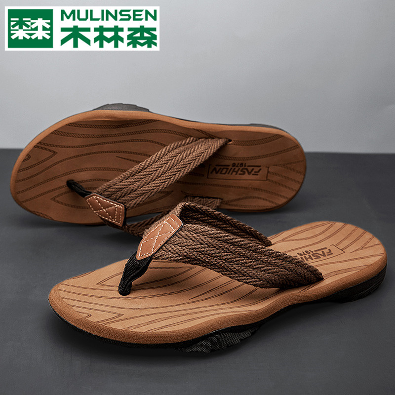Wood Linson Slippers Men's 2021 Summer New Soft Bottom Casual Anti-Slip Clip Feet Herringbone Tug Outside Wearing Tide Beach Shoes