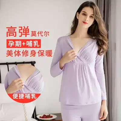 Pregnant women autumn clothes sanitary pants set modal pregnant cotton sweater autumn winter hot clothes postpartum lactation pajamas spring and autumn