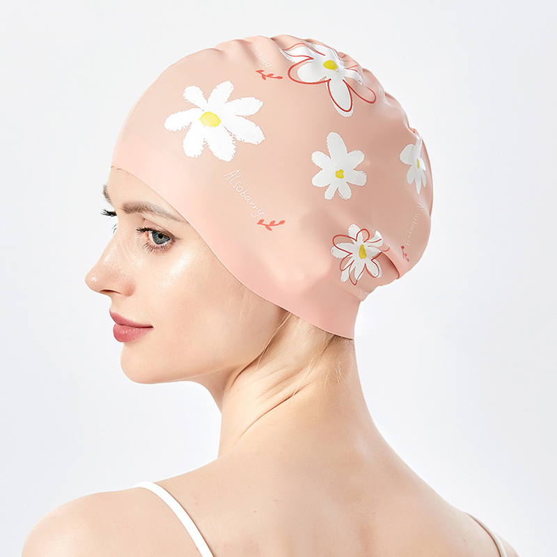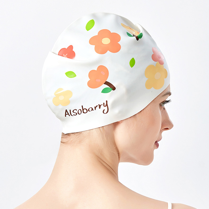 Fashion Silicone Swimming Cap Woman Waterproof Long Hair Special without Le Head Large Number of ear Specialties Increase printed swimming gear