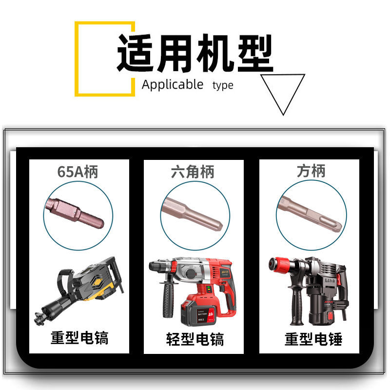 Fang Long Electric hammer drill impact drill bit 65A square shank hexagonal shank pointed flat chisel shovel Slotted Concrete Electric Pick Shovel Head