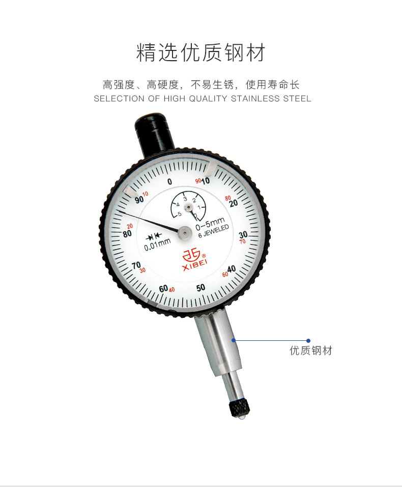 Qinghai Measuring Tool Green Dial Indicator 0-3-5-10mm0 01 Diamond-encrusted Seismic Mechanical Indicator Scale