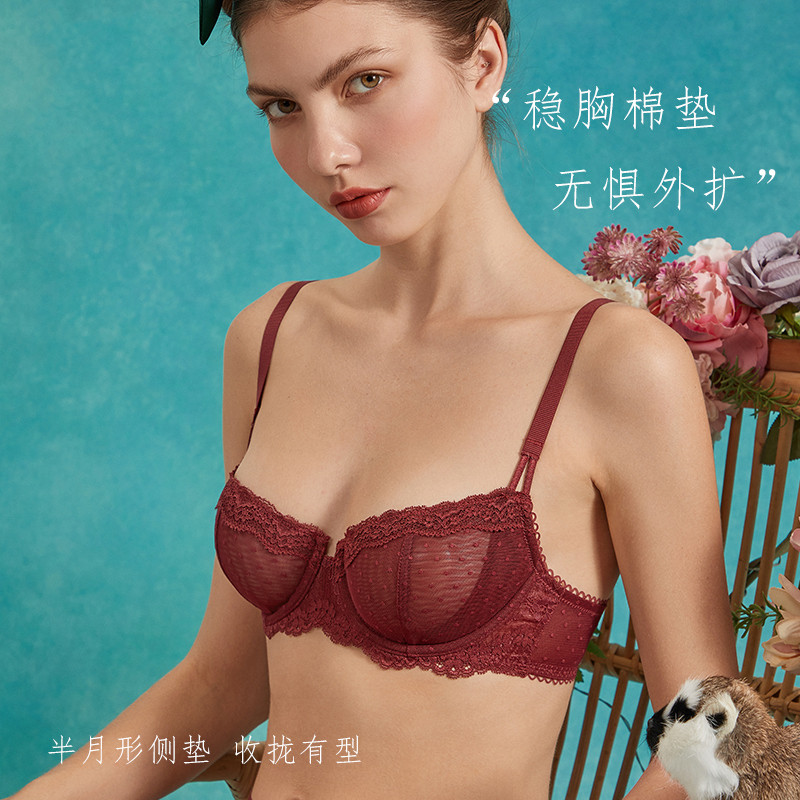 American Red French Liner Large Brast Small Bridge Summer Thin Anti-Low Half Cup of Breath Large Size