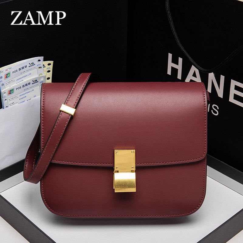 French ZAMP special cabinet women's bag genuine leather tofu bag box bag new tide single shoulder inclined satchel fashion net red bag