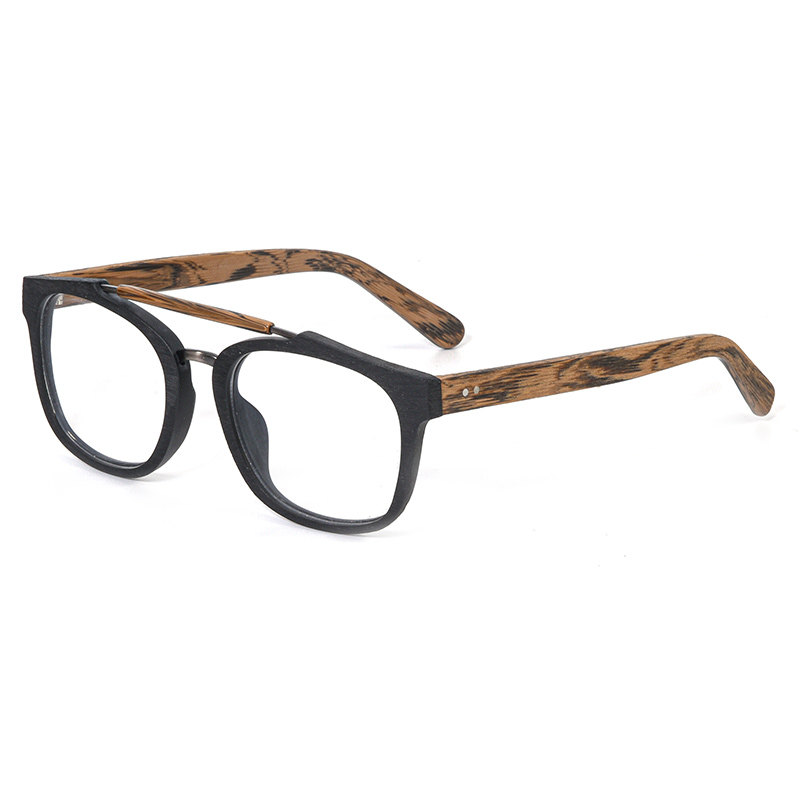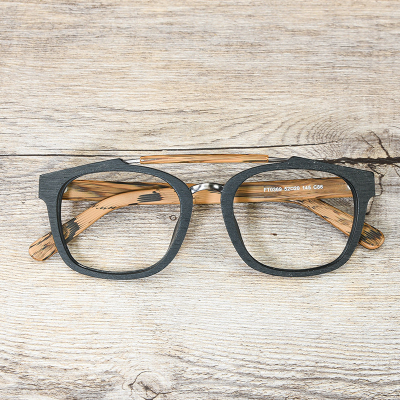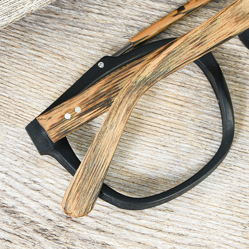 Full frame retro wooden large frame glasses frame men's wood grain black frame double beam myopia women's big face Korean version of flat glasses frame