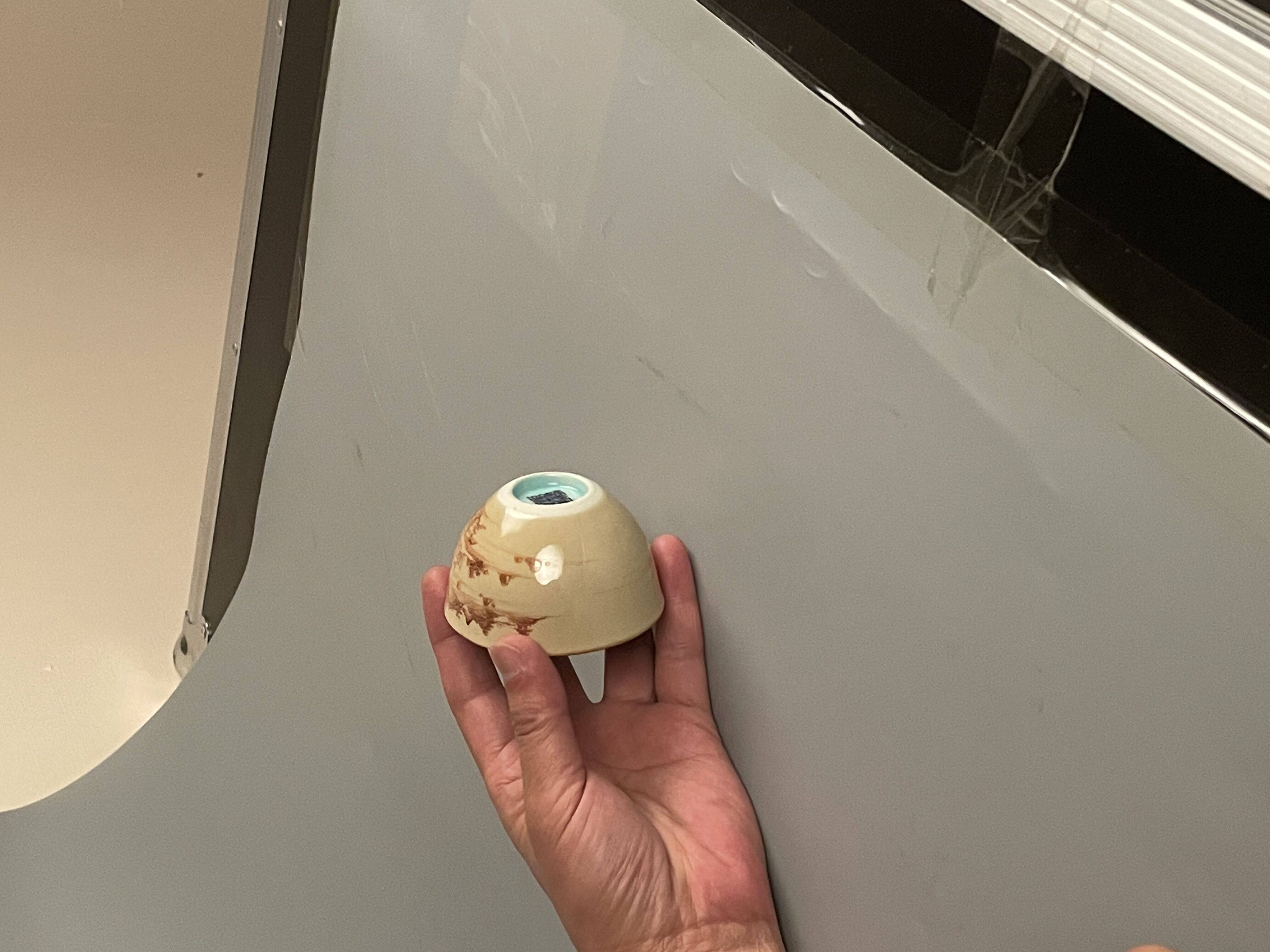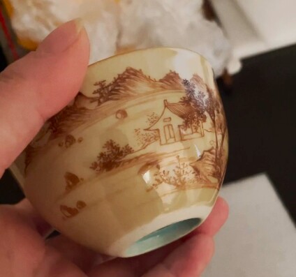 Qinggan Longmi yellow glaze Rouge painted lying ceramic foot Cup ceramic foot Cup ceramic foot Cup landscape painting double color Cup