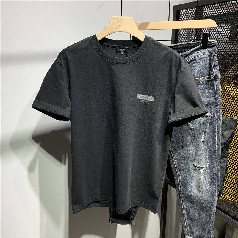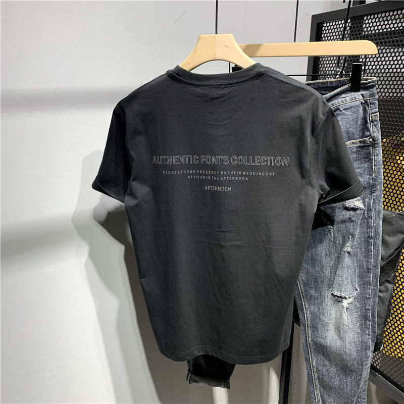 2022 fashion round neck simple letter printing short-sleeved T-shirt men's casual loose cotton summer inner half-sleeved T-shirt