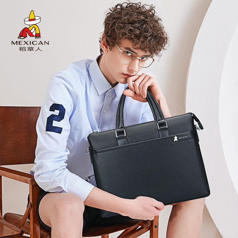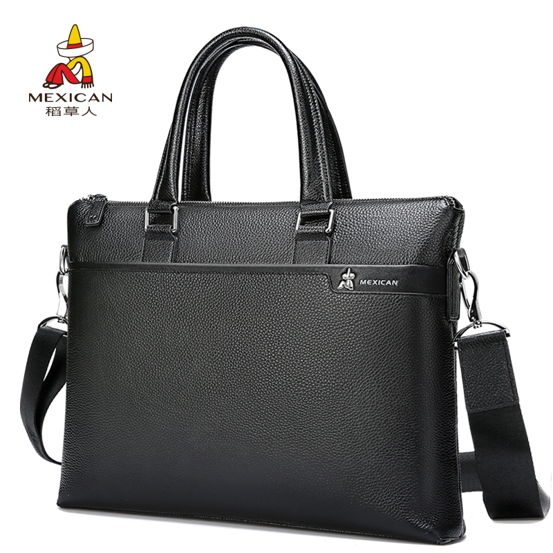 Rice Straw Man Hand Briefcase Men Business Casual Genuine Leather Computer Bag Men Brief Cow Leather Skew Satchel Bag single shoulder bag
