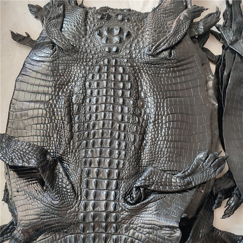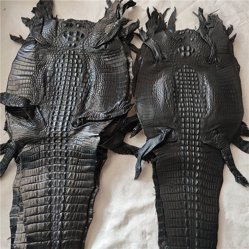 Crocodile whole water-dyed medium light black bone leather material Bamboo DIY bag wallet mobile phone protective case strap shoes