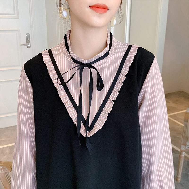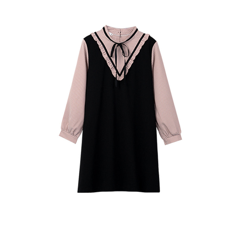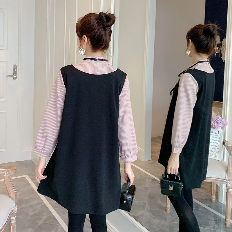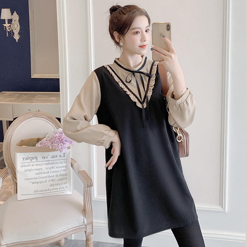 Pregnant women autumn dress suit fashion style long-sleeved striped top women's net red foreign style trendy mom loose mid-length