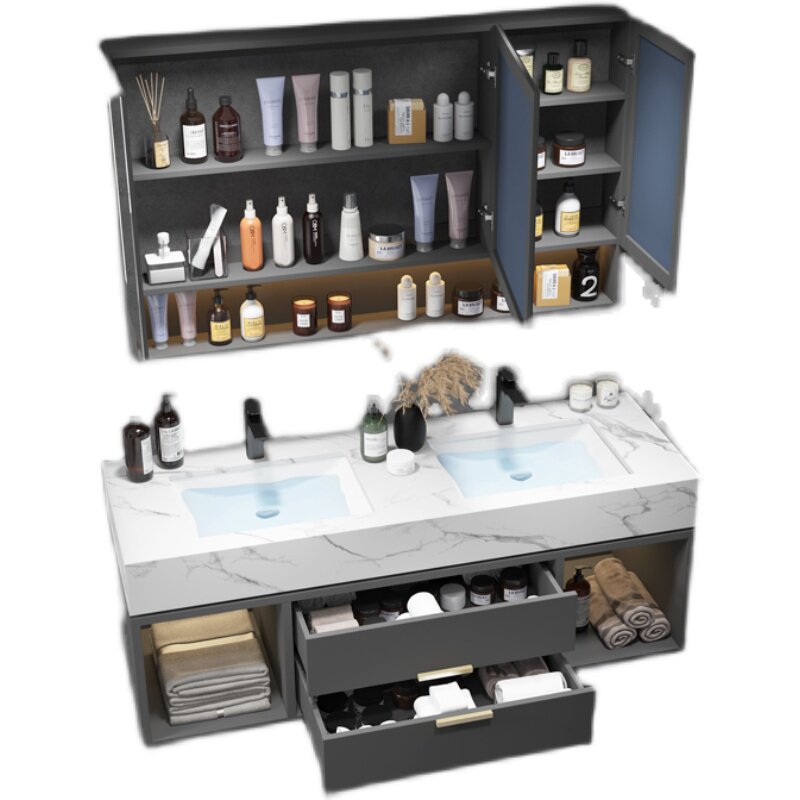 Light Extravagant Rock Board Integrated Basin Bath Cabinet Composition Solid Wood Handwashing Washbasin Wash Table Basin Intellectualized Makeup Room Hanger