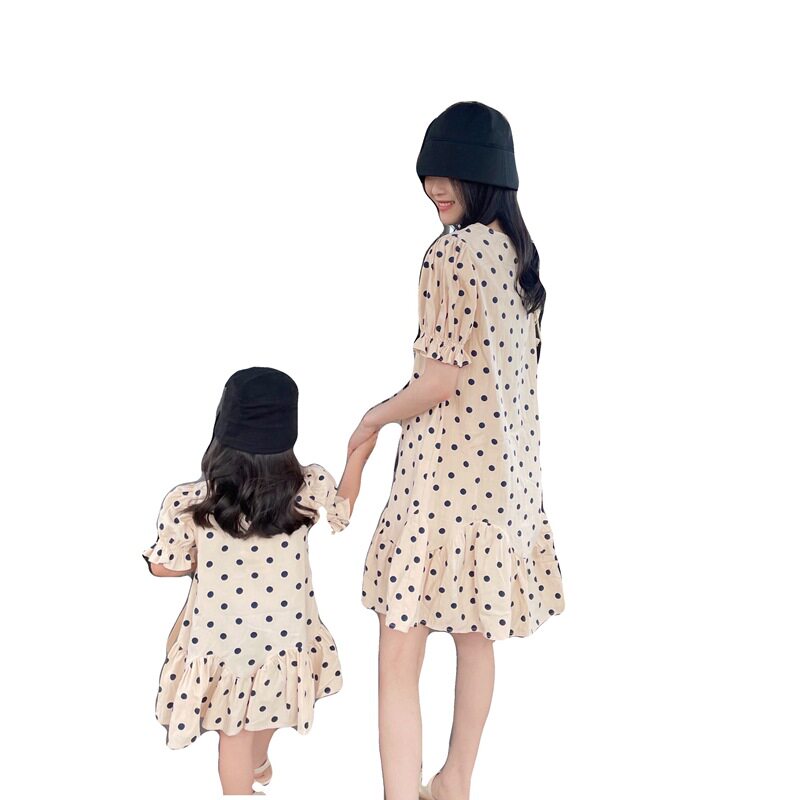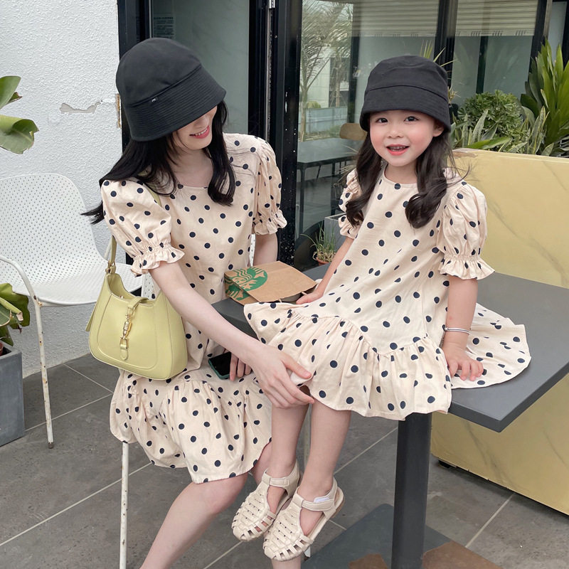 Mother and daughter in a dress.