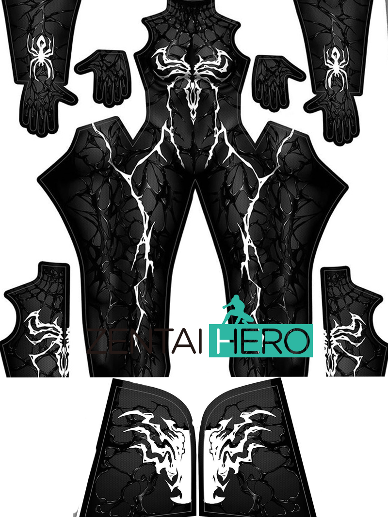 A secondary black venom slaughter Venom Carnage spider hero in a tight clothes role-playing dress