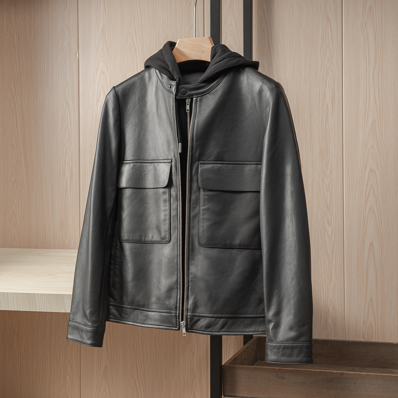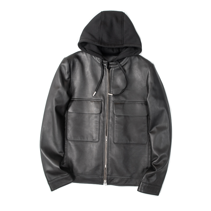 Pure extravagant class to flexo men Turkish imports little lamb leather removable cap overboard positive leather leather jacket