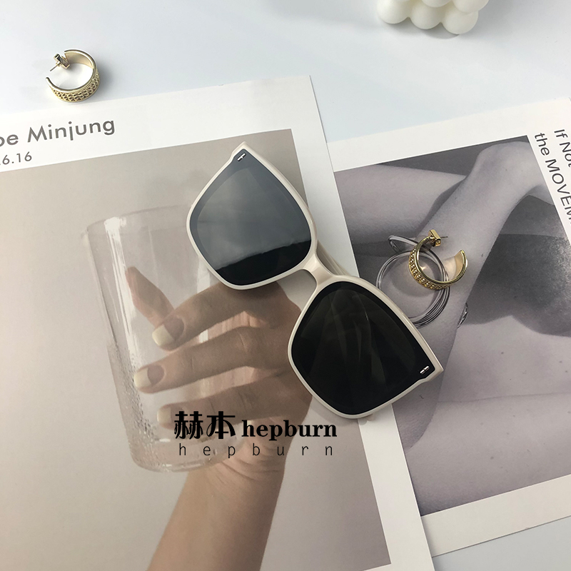 Sunglasses 2021 new trendy women's brown white frame big face thin round face retro sunglasses