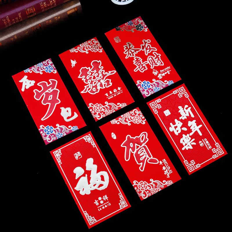 High-grade 10,000 yuan red envelope silk (horizontal) Gong Xi Fa Cai 6 packs Congratulations He Xi red envelopes 6 packs Lunar New Year red envelopes 6 packs Small red envelopes Gong Xi Fa Cai 6 packs Happy New Year