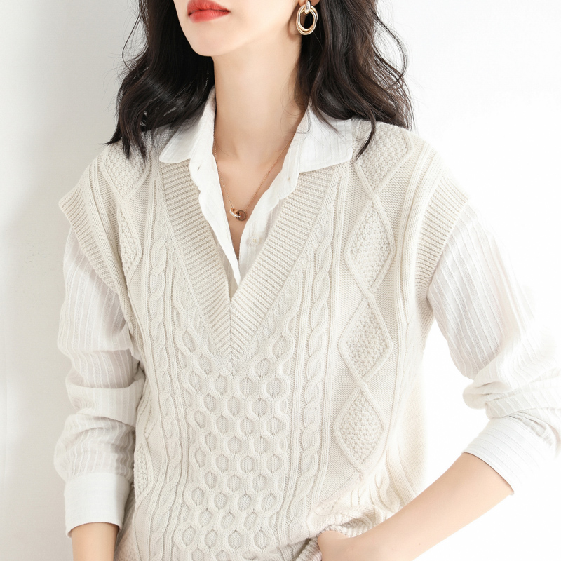 Autumn and winter outlay V collar waistcoat Lady Loose Jacket Short sweater knit Shoulder Vest Non Cashmere Beating Bottom