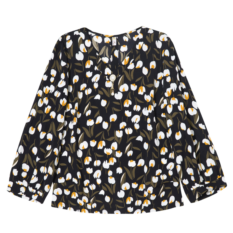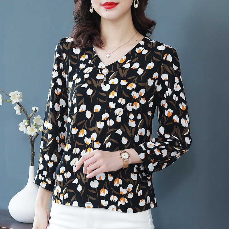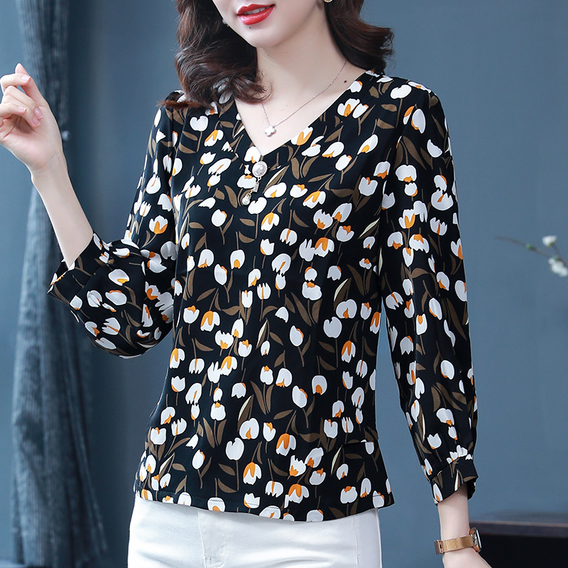 Temperament V Coled Flowers Snowspun Shirts Long Sleeves Spring Clothing 2022 New women's upscale Fancy Little Shirts Mom Spring blouses