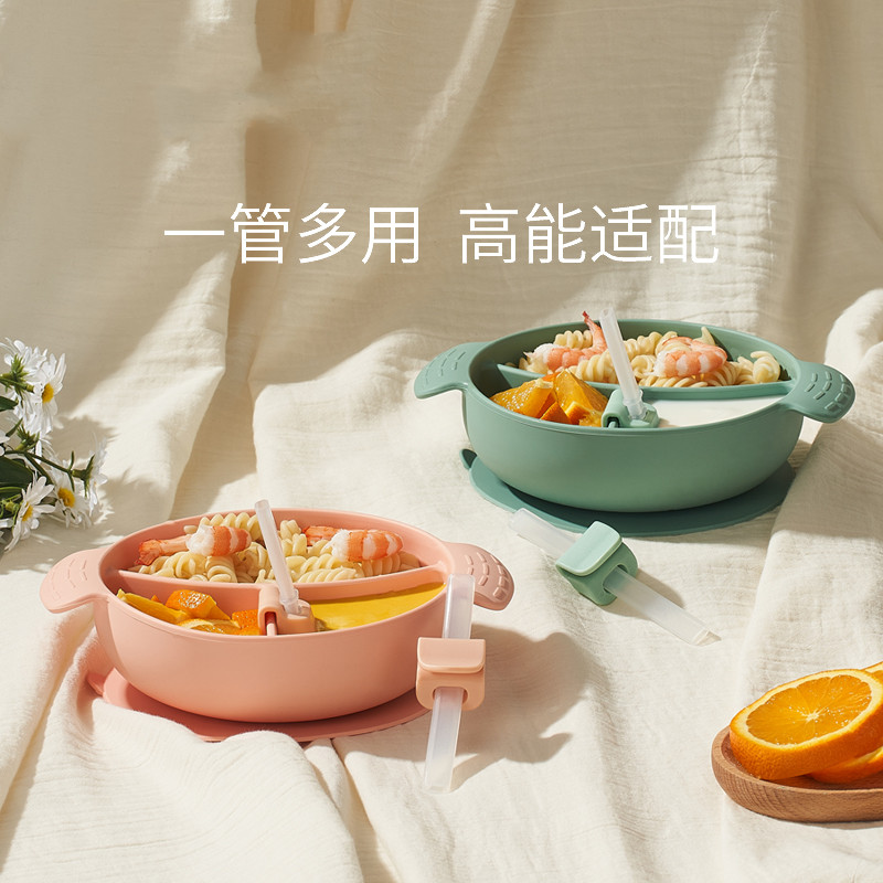 Baby drinking soup straw baby drink porridge theorizer with buckle silicone straw child sub food non-disposable