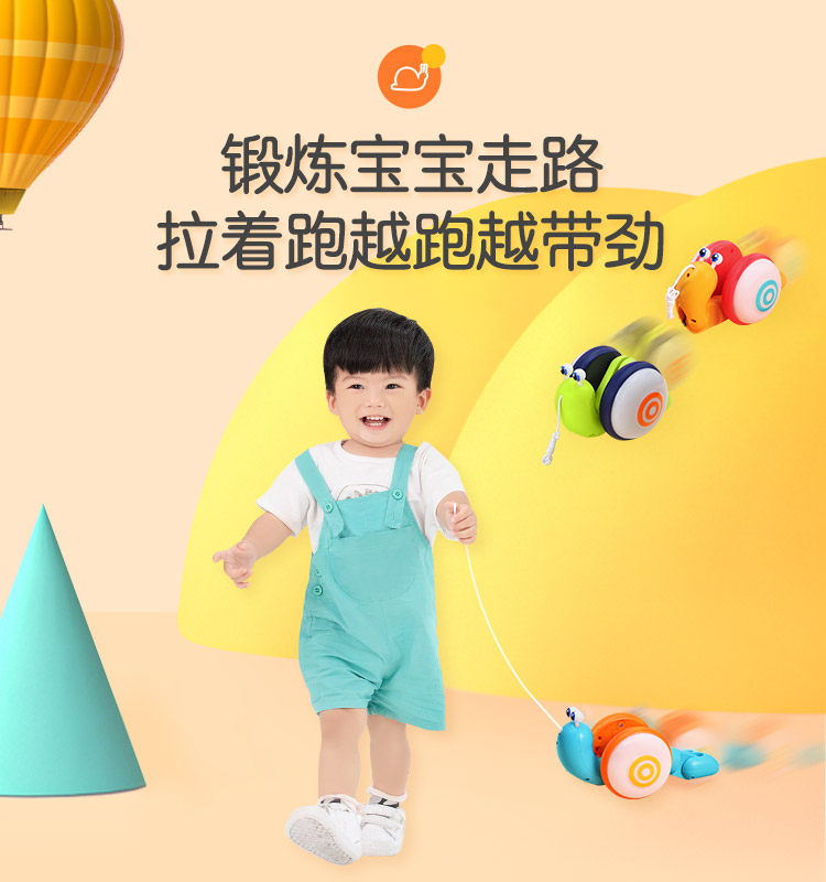 Slim rope pull rope Rope Snail Toy Hauling Cord Toy Baby Boy Creative Traction Crawl to Shake Soundnet Red
