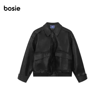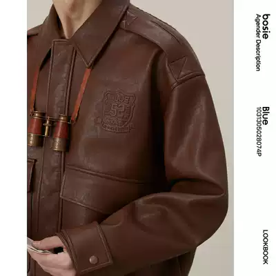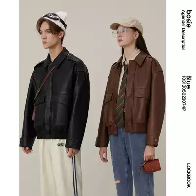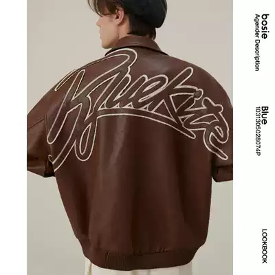 bosie Blue2021 year new leather men Spring and Autumn locomotive retro lapel college style trend short coat
