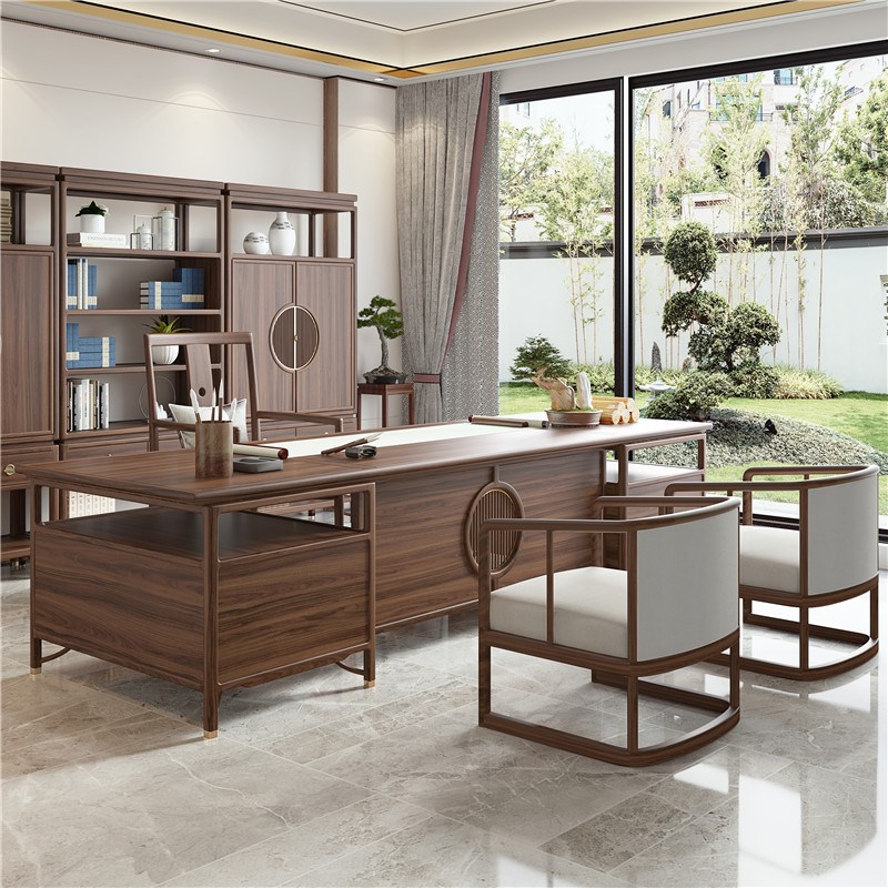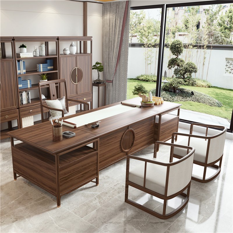 New Chinese Style Boss Table President Table Wu Jinmu Great Bandae Family Furniture Zen Desk Chair Composition Full Solid Wood Desk