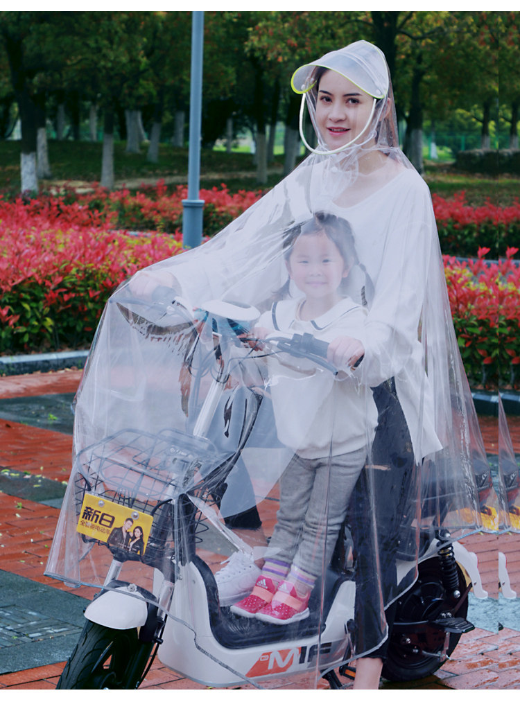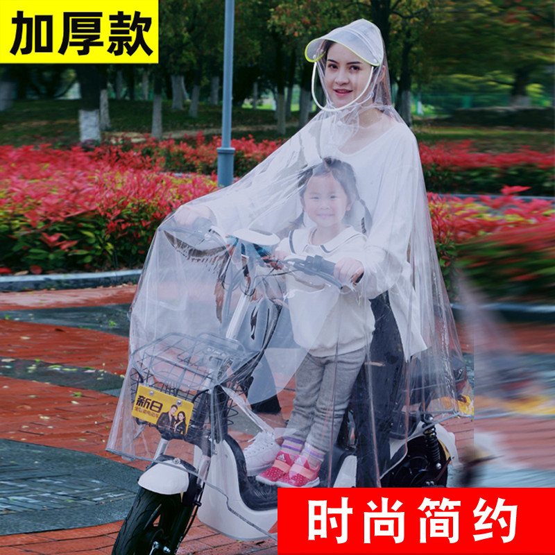 Electric Car Full Transparency Fashion Parenting Rain Cape Electric Locomotive Students Thickened Mother-son Double Raincoat Ride