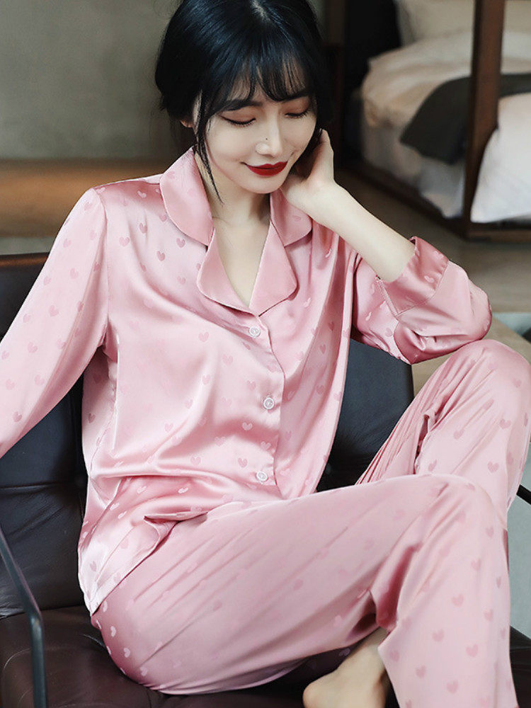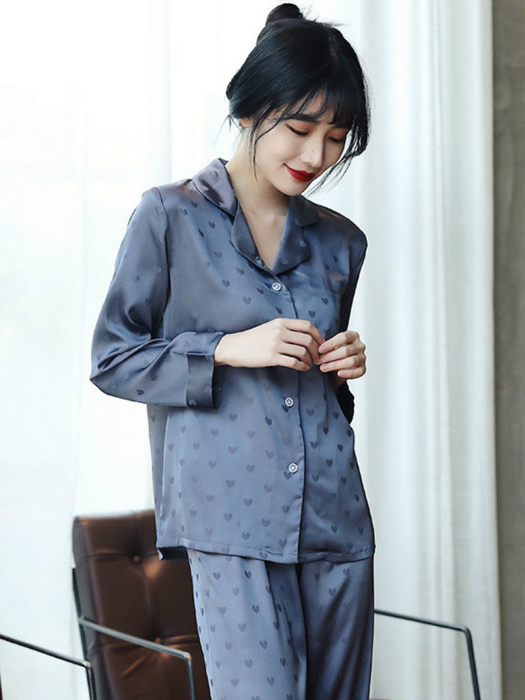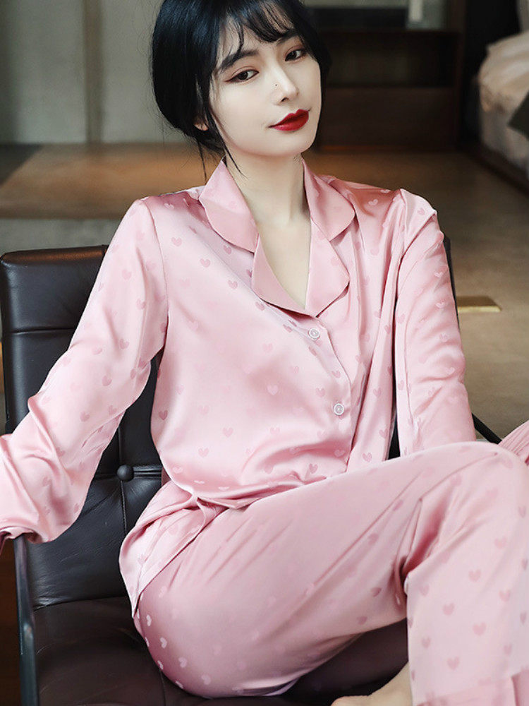 〖A D〗 Comfortable home clothes ~ also beautiful and high-end pajamas at home, ice silk thin section long-sleeved home clothes