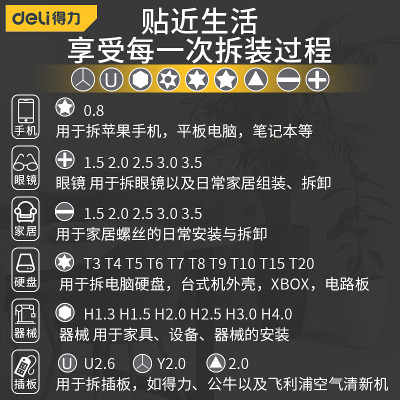 Deli screwdriver set home universal triangle plum repair notebook computer disassembly mobile phone multi-function tool