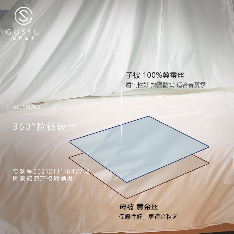 Gusuji brocade golden double palace silkworm silk quilt mother's quilt 2-in-1 silk 360 ° 100 mulberry silk winter