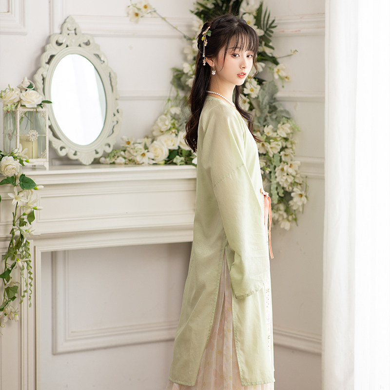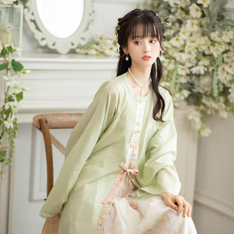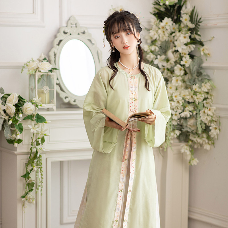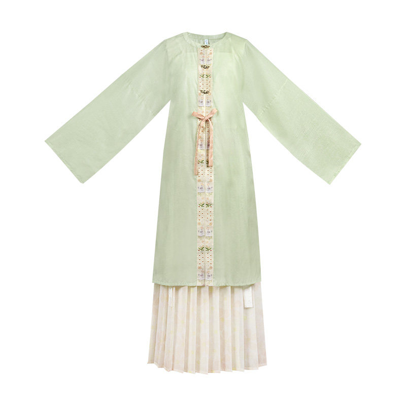 Pool summer: hedges flower cats clear round neckline long shirts press pleats for original improvement Hanfu women's daily state tide autumn