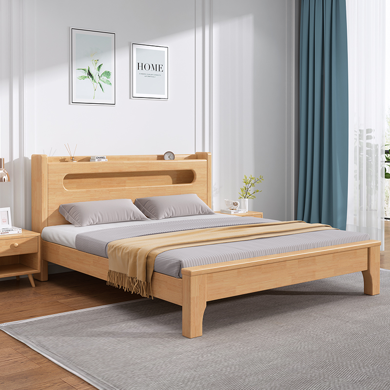 Wolf all solid wood bed Nordic 1 5 m 1 8 rubber wood light luxury bed modern minimalist master bedroom storage double bed