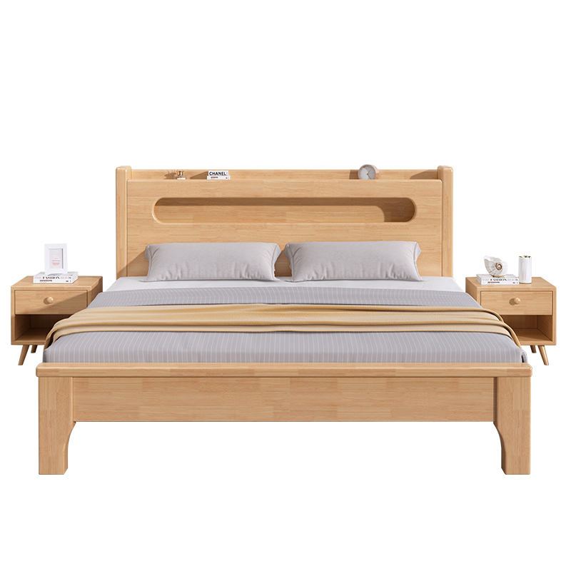 Solid wood bed-(with socket) Solid wood bed-(with socket) 1 bedside table Solid wood bed-(with socket) 2 bedside tables Solid wood bed-(with socket) 10cm latex mattress