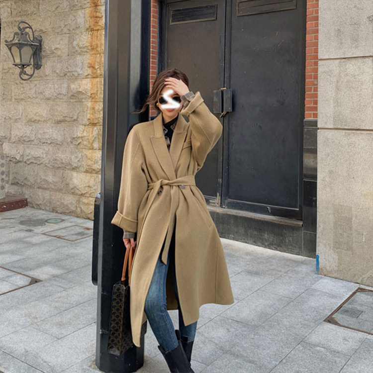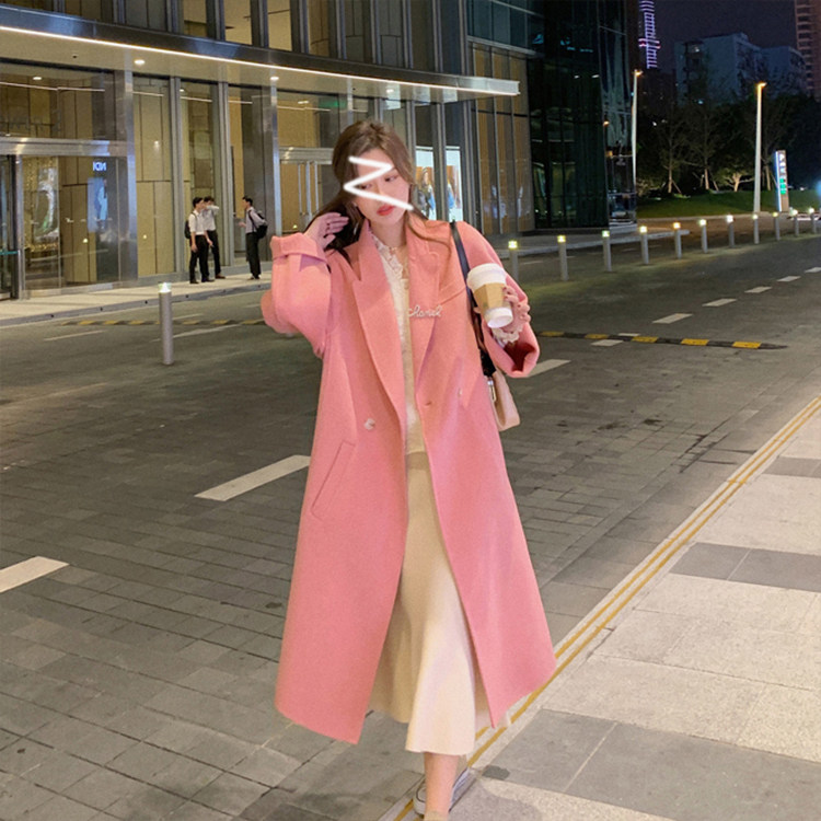 New Dongdaemun off-season double-sided cashmere coat women's mid-length version loose high-end pink 2021 new double-sided wool