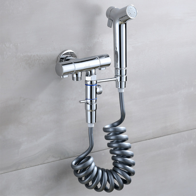 Copper three-way water splitting valve rotatable maternity cleaner nozzle holder lengthened toilet corner valve small shower spray gun hanging base