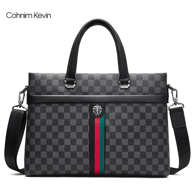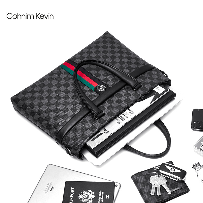 Men's Handbag Genuine Leather Business Large Capacity 14 Inch Pen Electric Bag Briefcase Single Shoulder Inclined Satchel Bag Tide