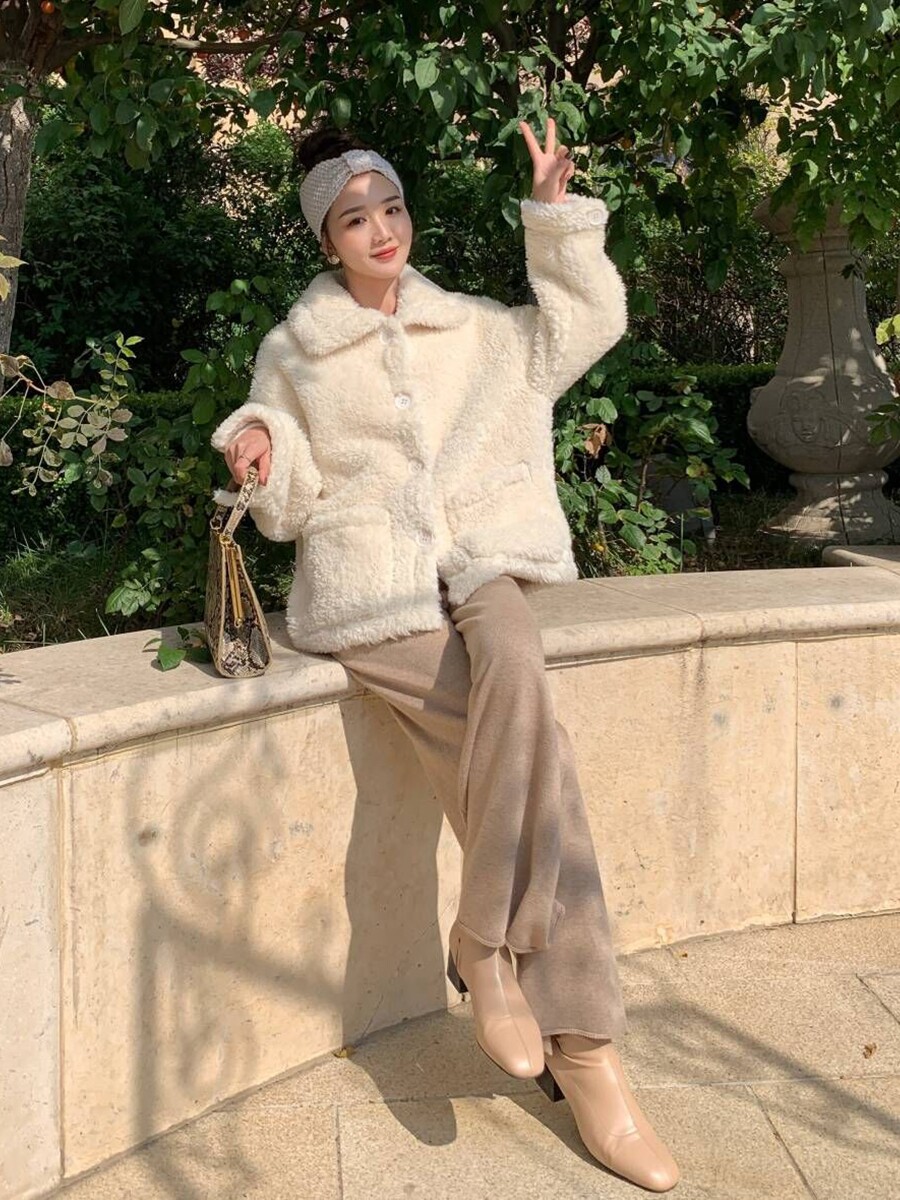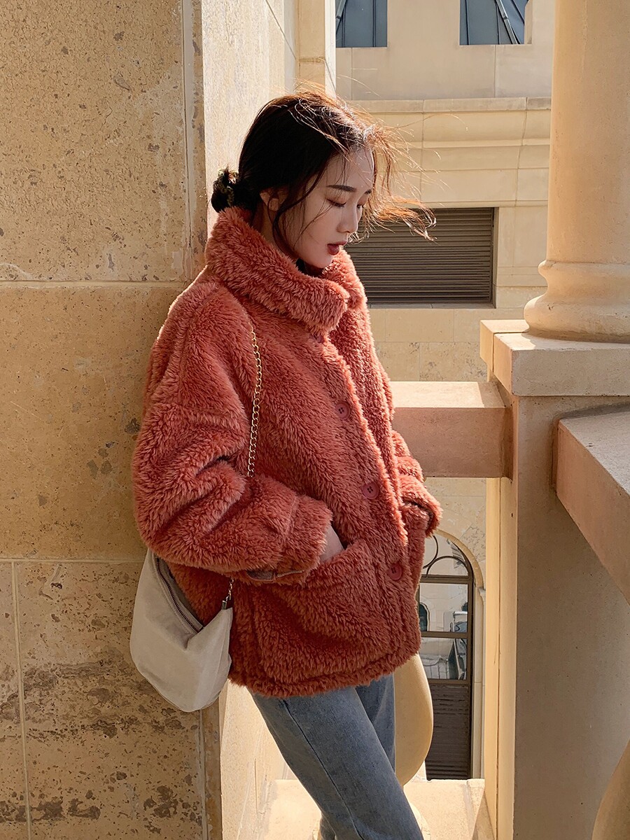 (Into Winter Discount Spot) Retro antique lamb wool coat female winter 2020 new warm plush thickened blouses