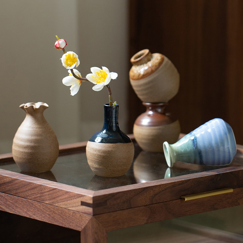 Creative ins handmade small vase flower arrangement mini ceramic decoration modern minimalist wine cabinet dried flower decoration decoration