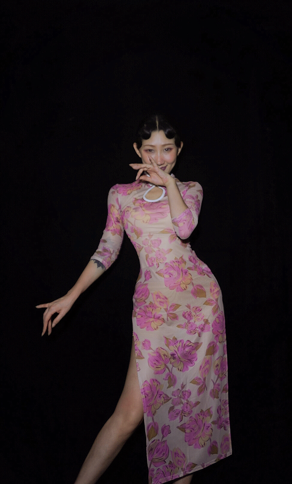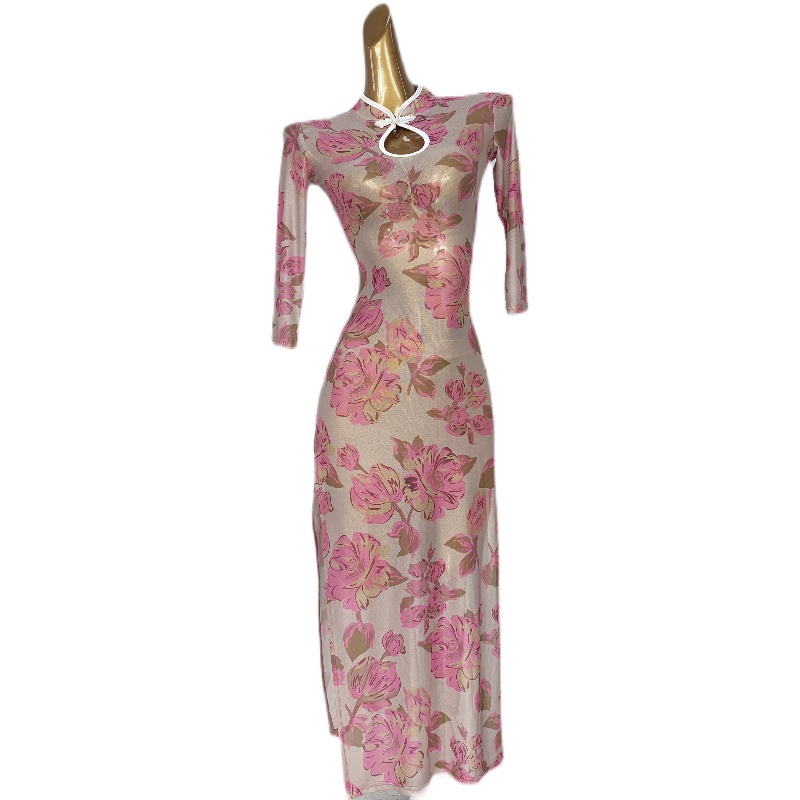 Clear Barn no Withdrawal No Change Qipao (Peony) Net yarn Breathable Elastic high open fork Classic Dance Suit out of the suit-Taobao