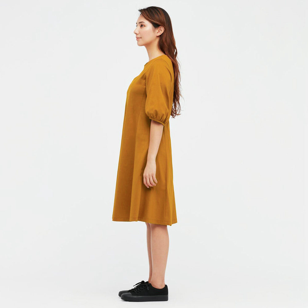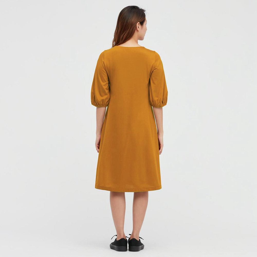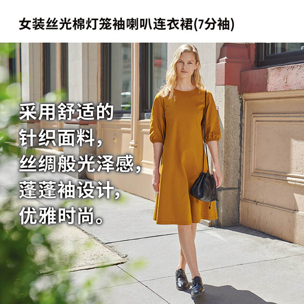 Uniqlo Women's Clothing Silk Light Cotton Lantern Sleeve Horn Foreign Dress (70% sleeves) 443298 UNIQLO