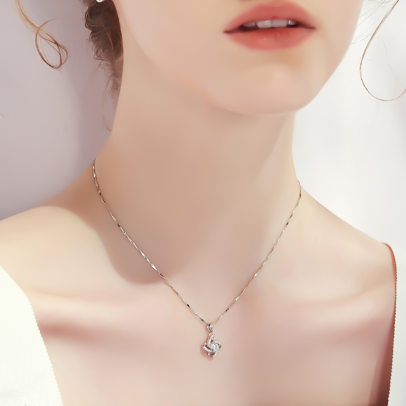 Multi-Drill Four Leafy Grass Platinum Pendant Necklace
