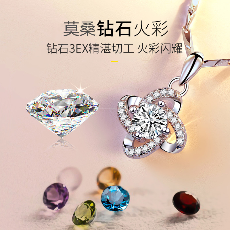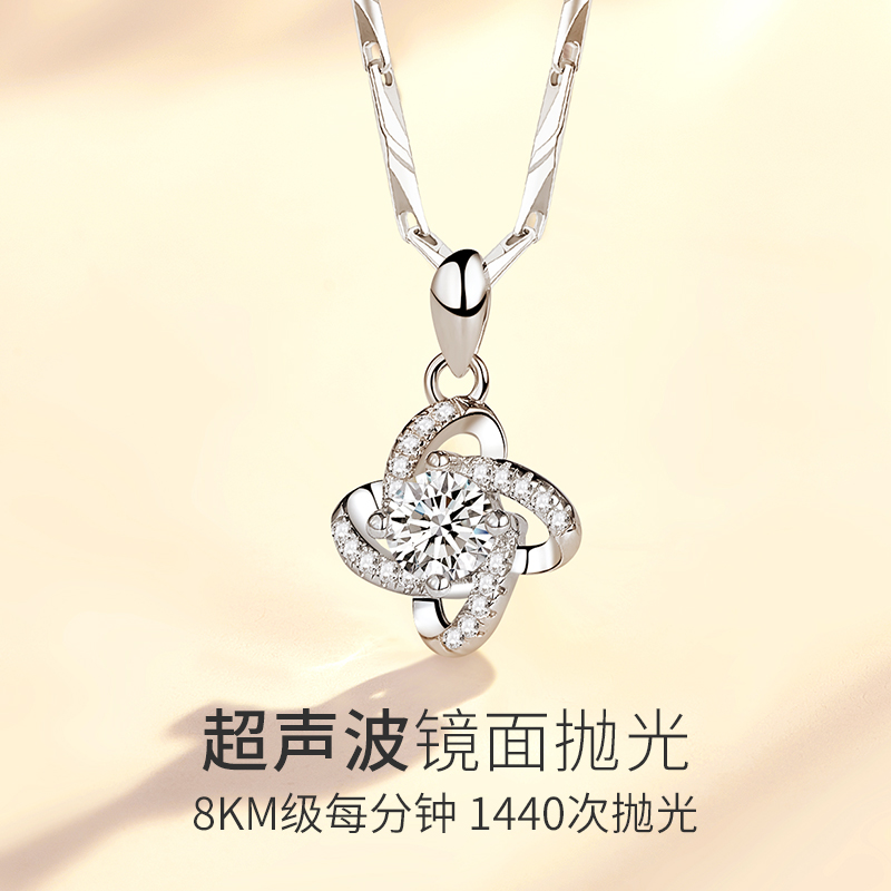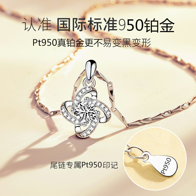Old Fengxiang And Pt950 Platinum Necklace Woman Platinum Lock Bone Chain Quadruleaf Grass Diamond Pendant Birthday Gift Lettering