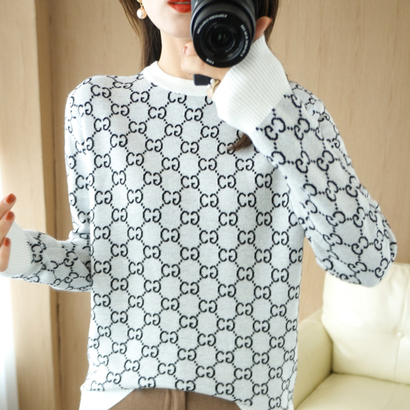 Autumn Winter Sheep Sweatshirt Hooded Sweater Woman New Non Cashmere Round Collar Knit 100 Lapped Retro Loose Temperament Blouse